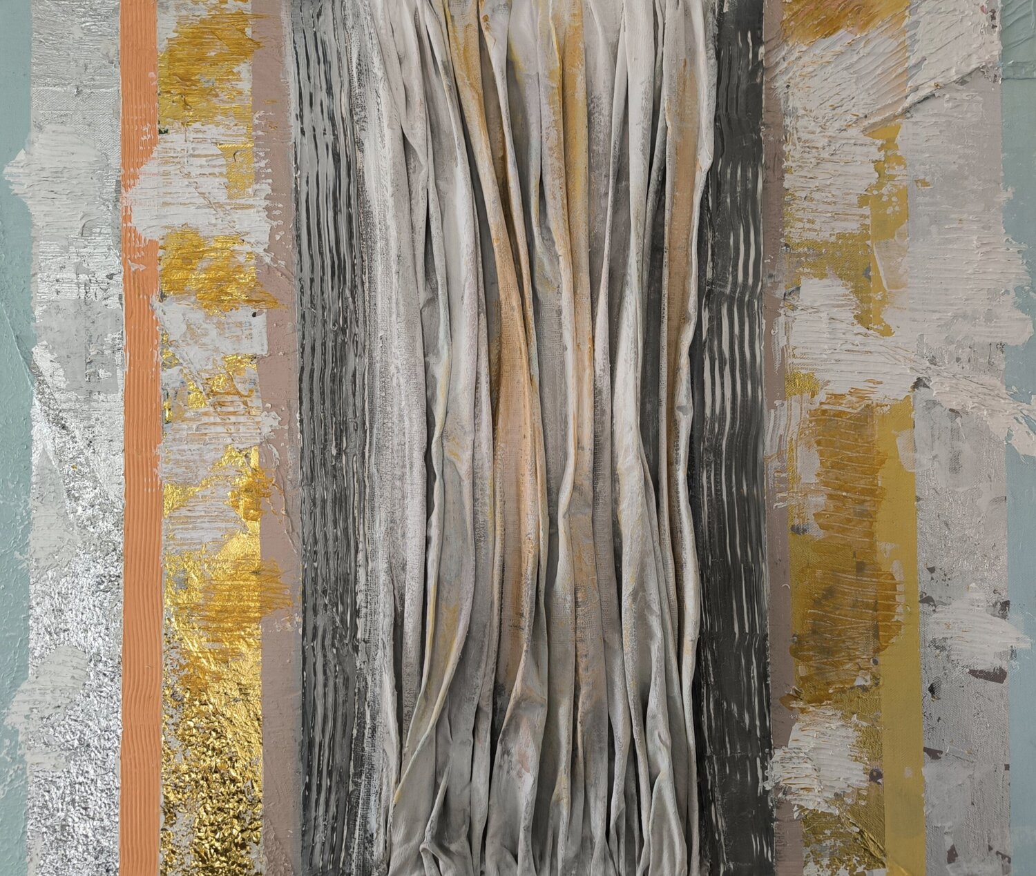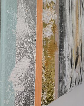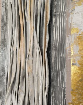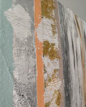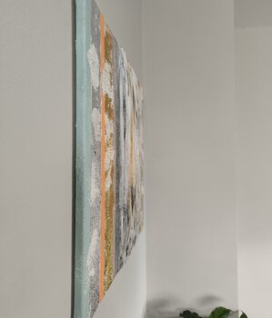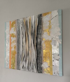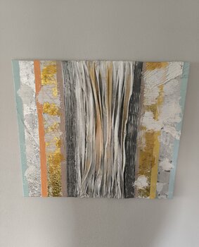 In diesem Werk habe ich mit kräftigen Materialien wie Zement, Gold- und Silberfolie das Leben in seiner rohen Schönheit eingefangen. Die wechselnden Texturen und Farben spiegeln die Tiefe menschlicher Emotionen wider, während die abstrakten Formen eine spannungsgeladene Struktur schaffen. Es strahlt eine kraftvolle Energie aus, die sowohl Vintage-Charme als auch rohe, expressive Wucht in dein Zuhause bringt. Dieses Bild ist im Winter bei Schnee draußen entstanden und es lief mein Lieblingslied zu dieser Zeit "My Snowman and Me" von Sia