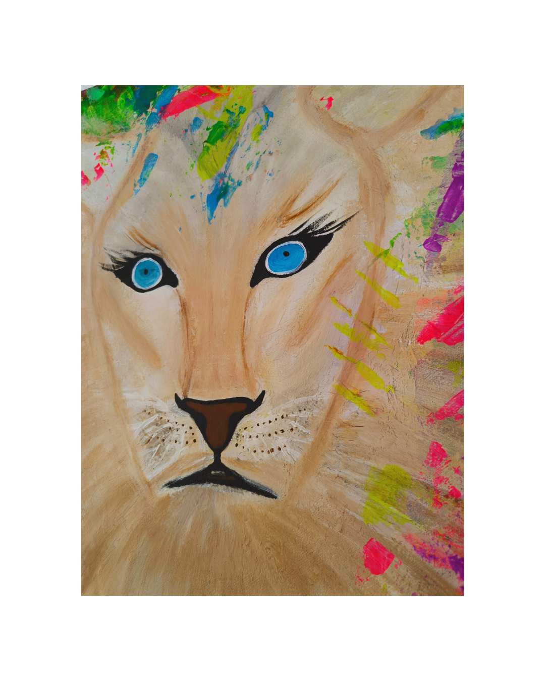 The composition is wild, unyielding, and full of emotion—just like the lioness that gives the work its title. The painting challenges the gaze, drawing it into its depths and not letting go. Every brushstroke, every explosion of color speaks of strength, independence, and untamed vitality.